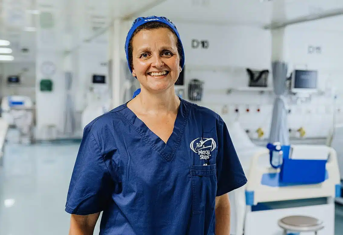 Sans les professionnels bénévoles, le travail de Mercy Ships en partenariat avec les pays hôtes pour offrir des soins chirurgicaux gratuits et des formations ne serait pas possible. L’une de ces bénévoles, le Dr Rachel Buckingham, a pratiqué l’opération qui a transformé la vie de Malang.