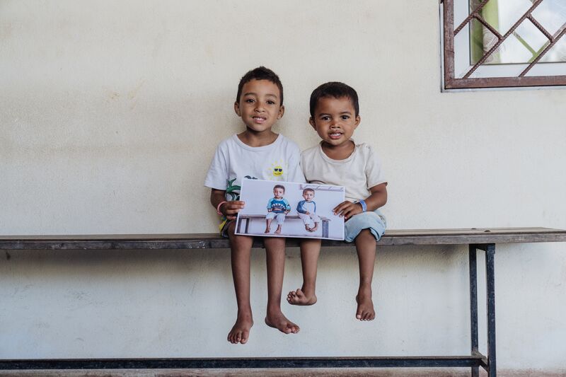 Un matin chaud à l’Hôpital Analakininina, l’hôpital local de Toamasina, deux frères sont assis côte à côte sur un banc en bois. Fanirisoa, cinq ans, parcourt la pièce d’un regard confiant, sa curiosité trahie par ses yeux qui scrutent chaque détail. À côté de lui, son jeune frère Vonjy, trois ans, se blottit contre leur mère. Plus réservé et silencieux, il cherche encore le réconfort de sa maman. L’environnement médical ne les empêche pas de rire et de se chamailler gentiment.